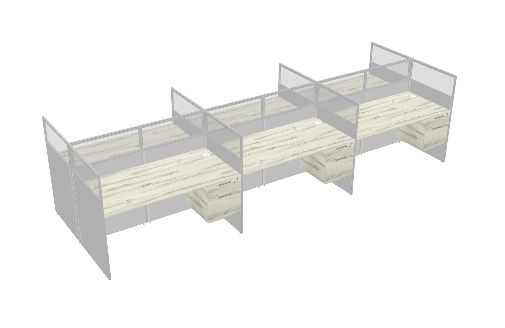 Heinne Holz Shared Rectangular Office Cubicle Panel System With Hanging Drawers For 6 Persons