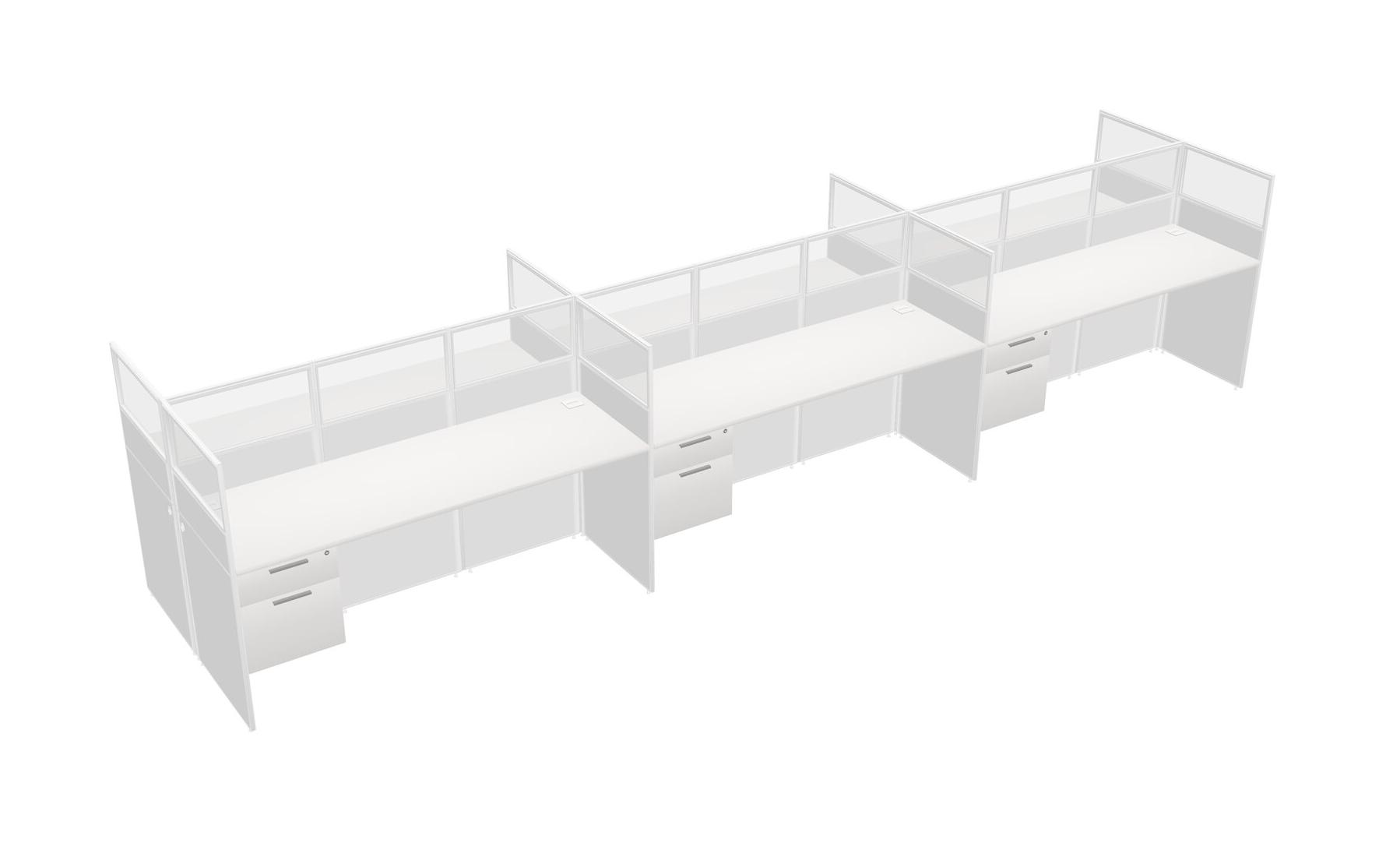 White Shared Rectangular Office Cubicle Panel System With Hanging Drawers For 6 Persons
