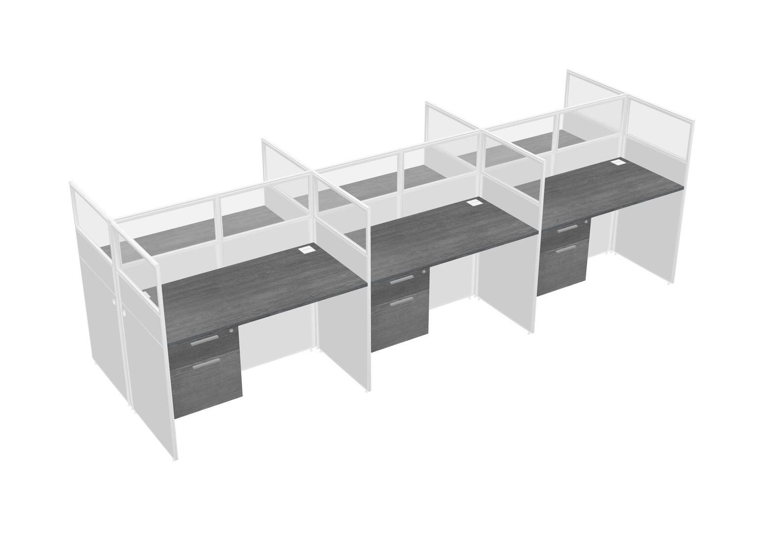 Grey Shared Rectangular Office Cubicle Panel System With Hanging Drawers For 6 Persons