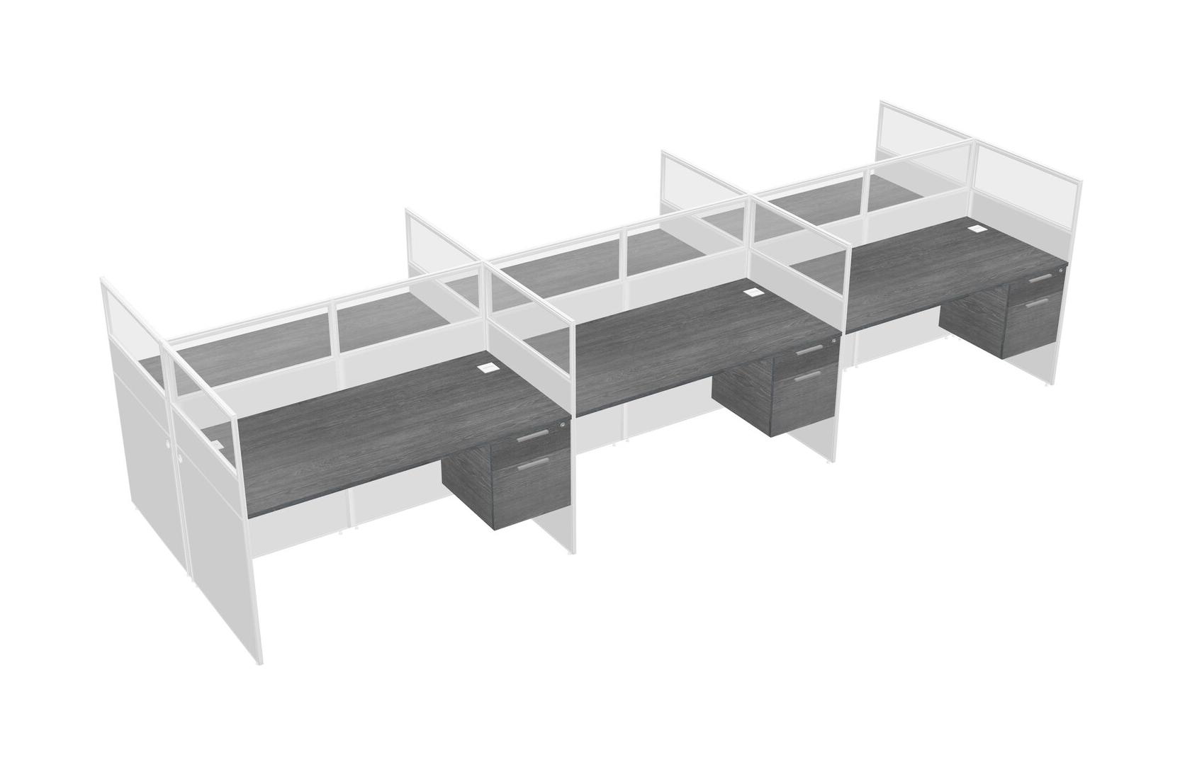 Grey Shared Rectangular Office Cubicle Panel System With Hanging Drawers For 6 Persons
