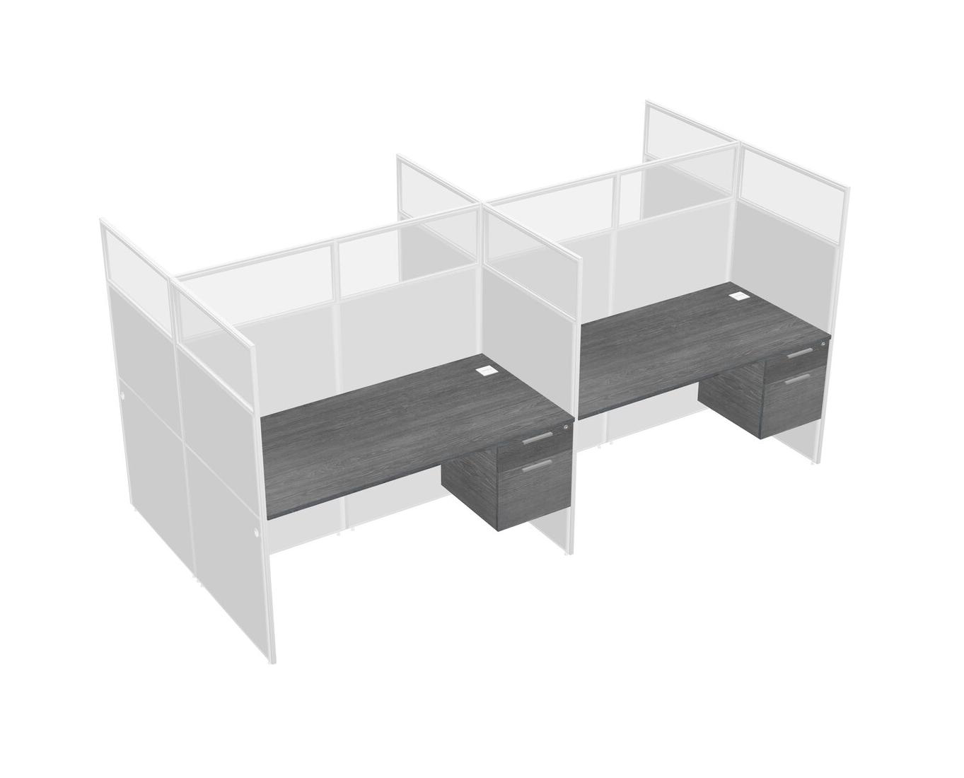 Grey Shared Rectangular Office Cubicle Panel System With Hanging Drawers For 4 Persons