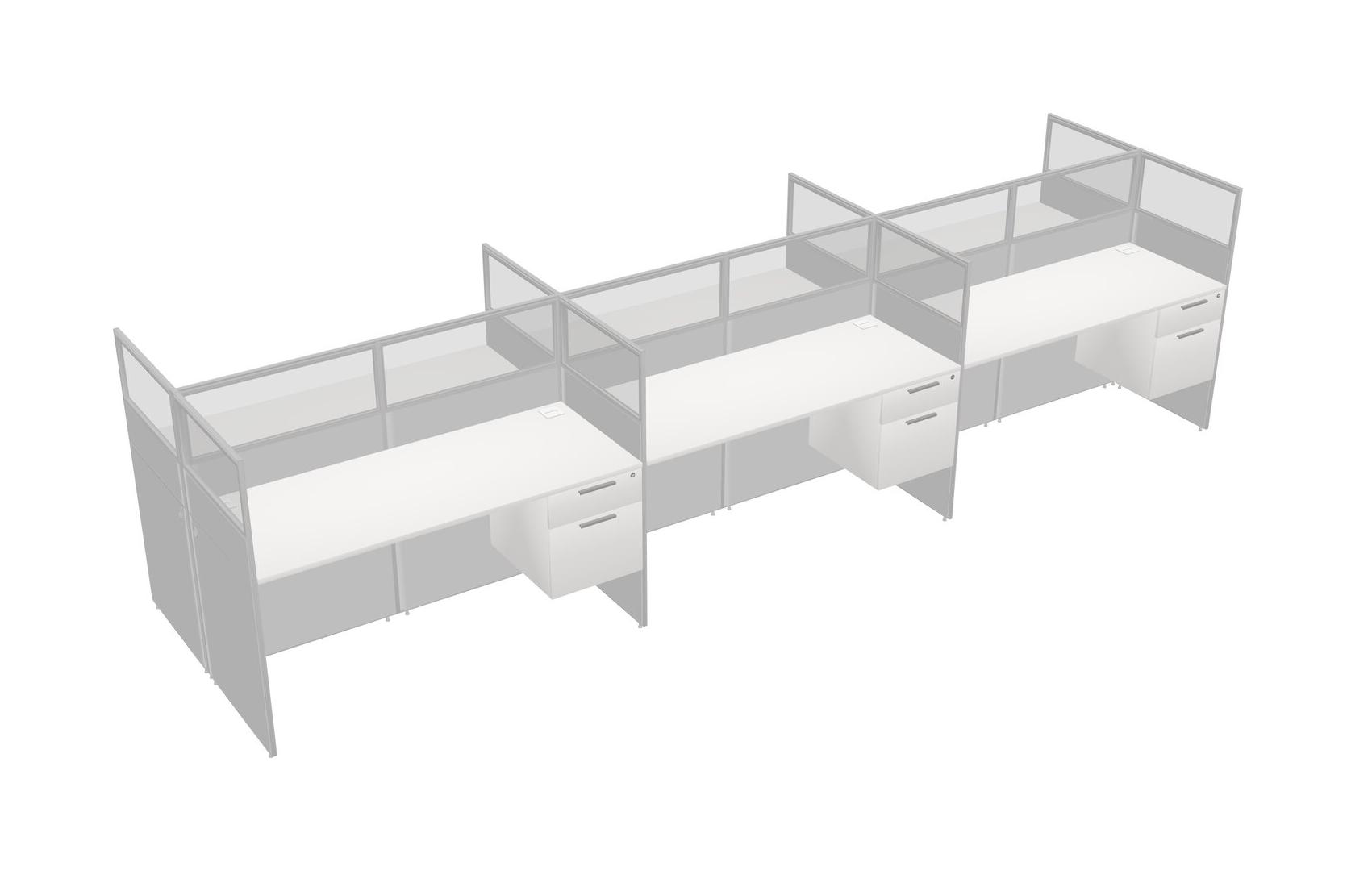 White Shared Rectangular Office Cubicle Panel System With Hanging Drawers For 6 Persons