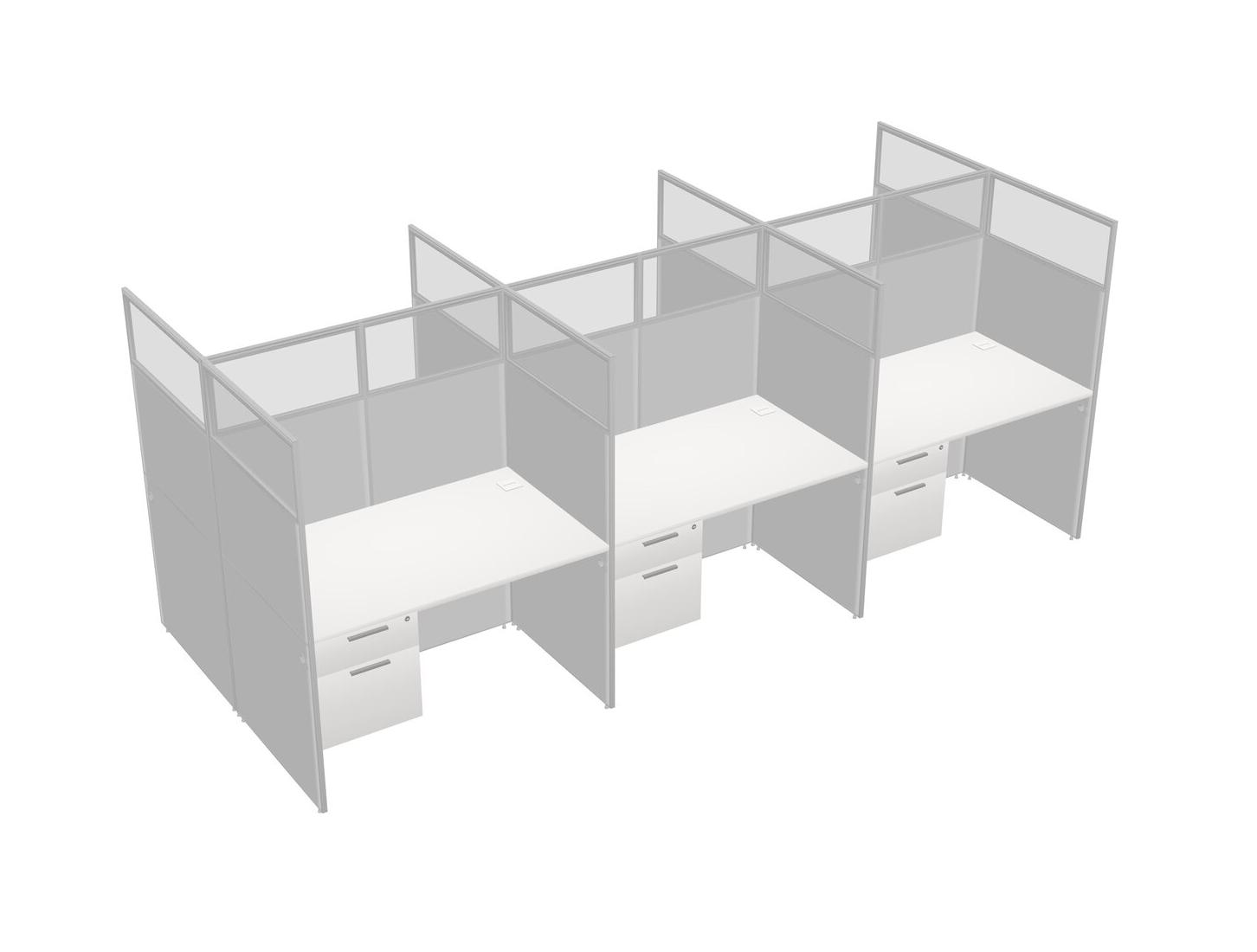 White Shared Rectangular Office Cubicle Panel System With Hanging Drawers For 6 Persons