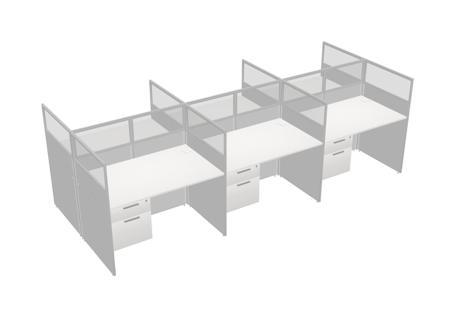 White Shared Rectangular Office Cubicle Panel System With Hanging Drawers For 6 Persons
