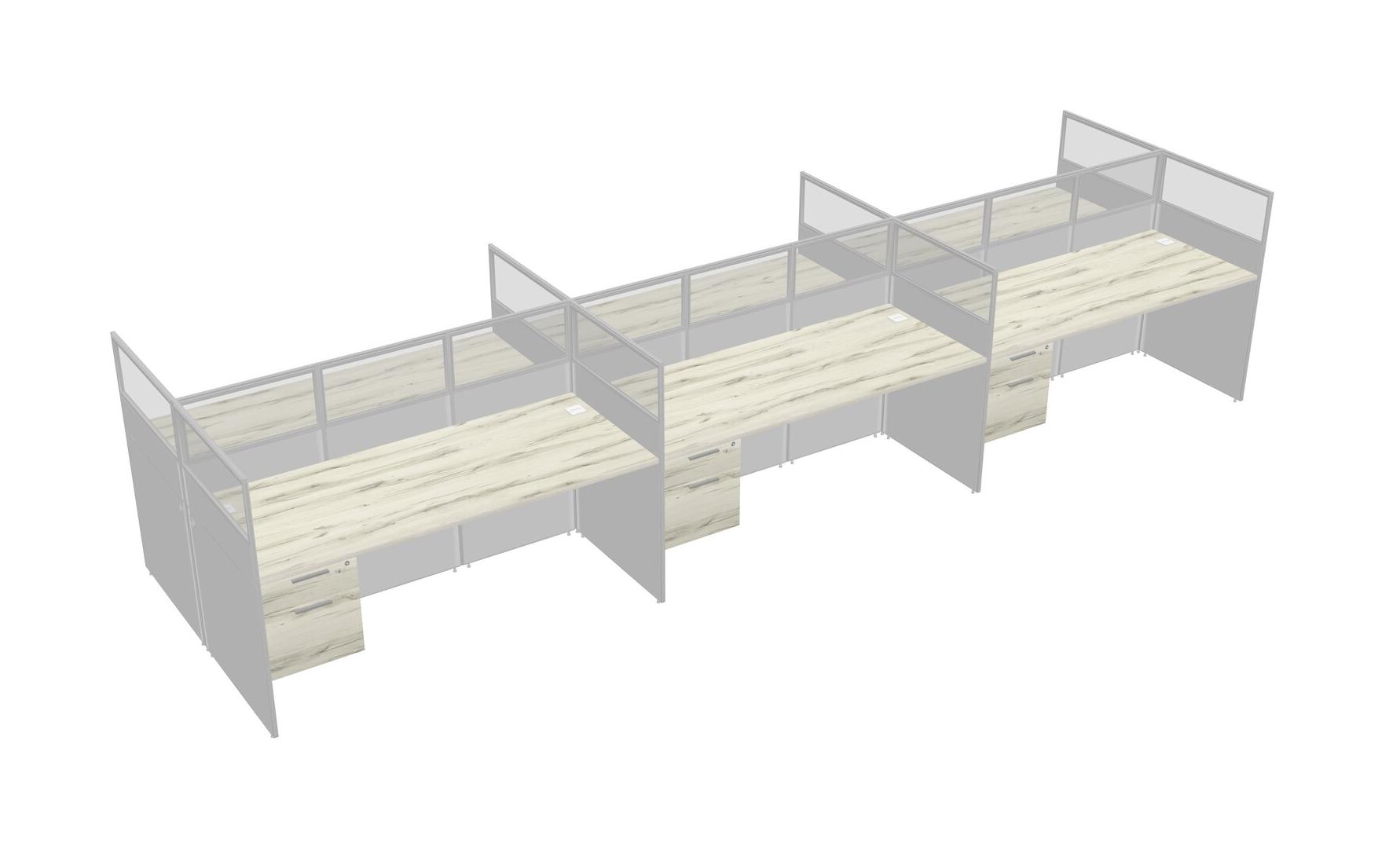 Heinne Holz Shared Rectangular Office Cubicle Panel System With Hanging Drawers For 6 Persons