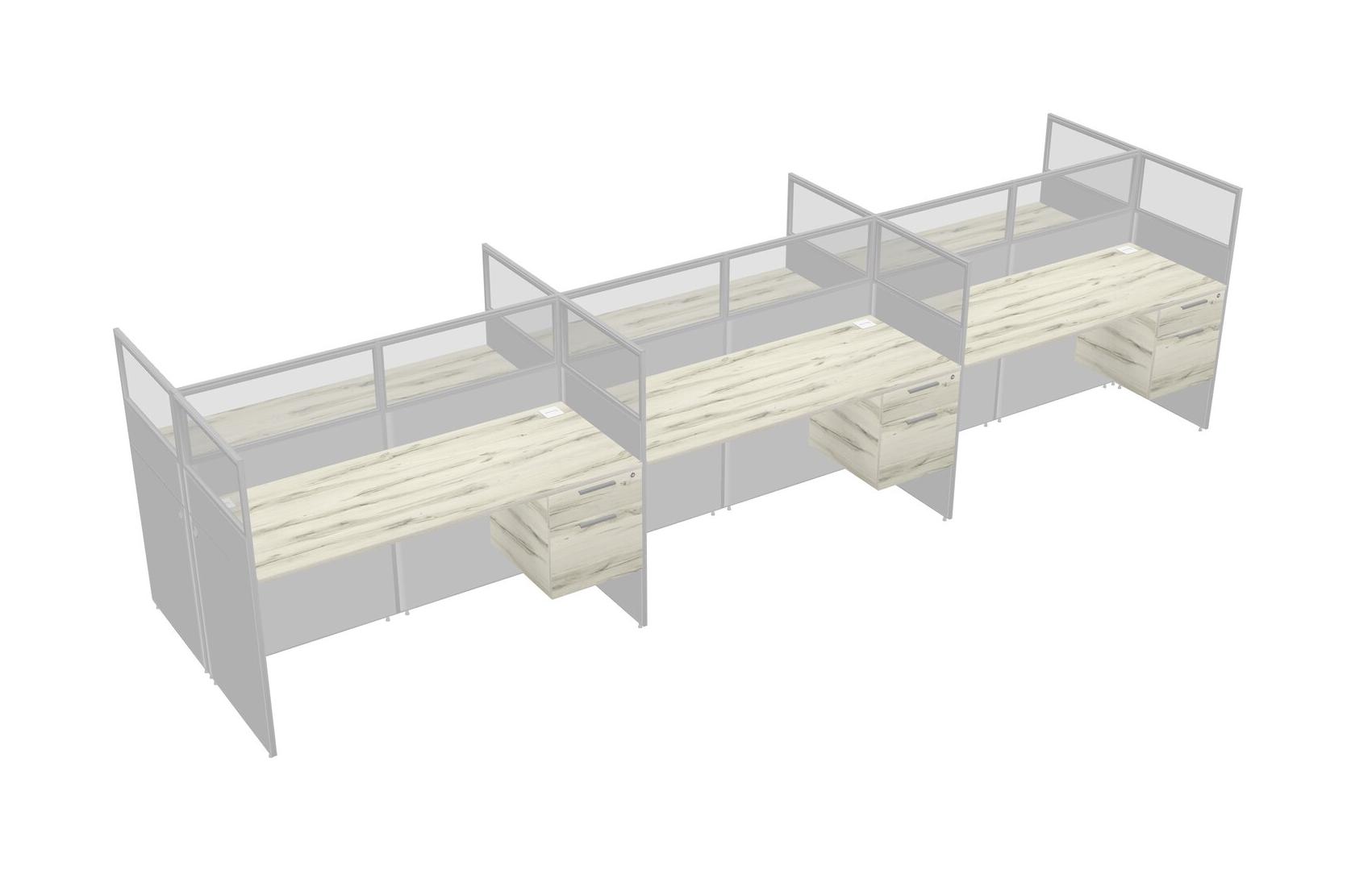 Heinne Holz Shared Rectangular Office Cubicle Panel System With Hanging Drawers For 6 Persons