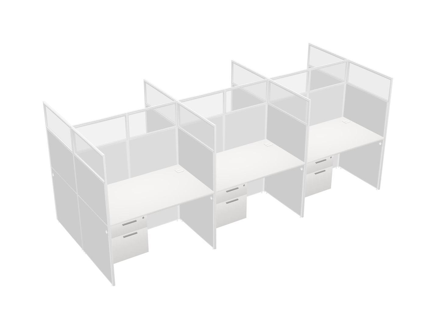 White Shared Rectangular Office Cubicle Panel System With Hanging Drawers For 6 Persons