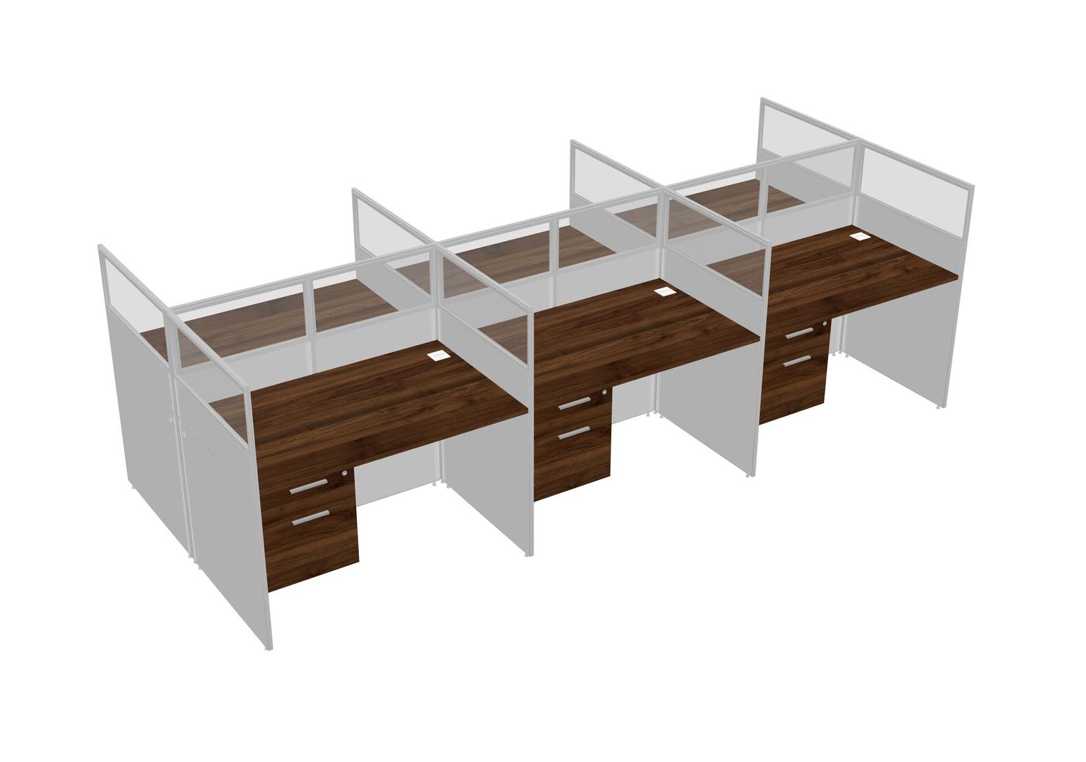Columbia Walnut Shared Rectangular Office Cubicle Panel System With Hanging Drawers For 6 Persons
