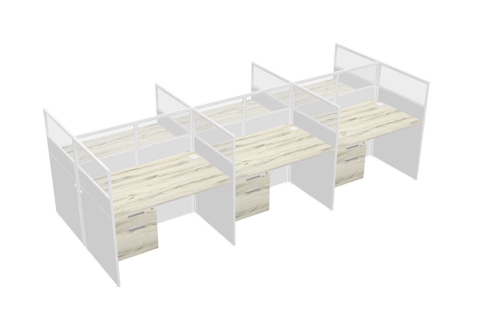 Heinne Holz Shared Rectangular Office Cubicle Panel System With Hanging Drawers For 6 Persons