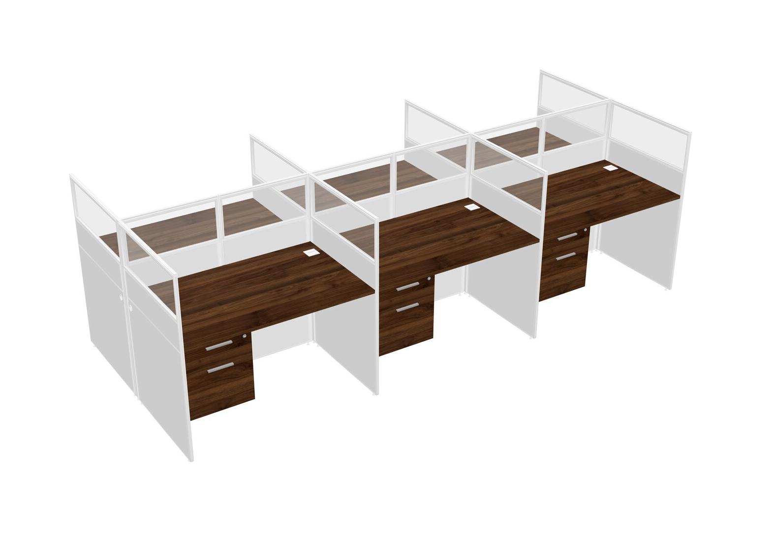 Columbia Walnut Shared Rectangular Office Cubicle Panel System With Hanging Drawers For 6 Persons