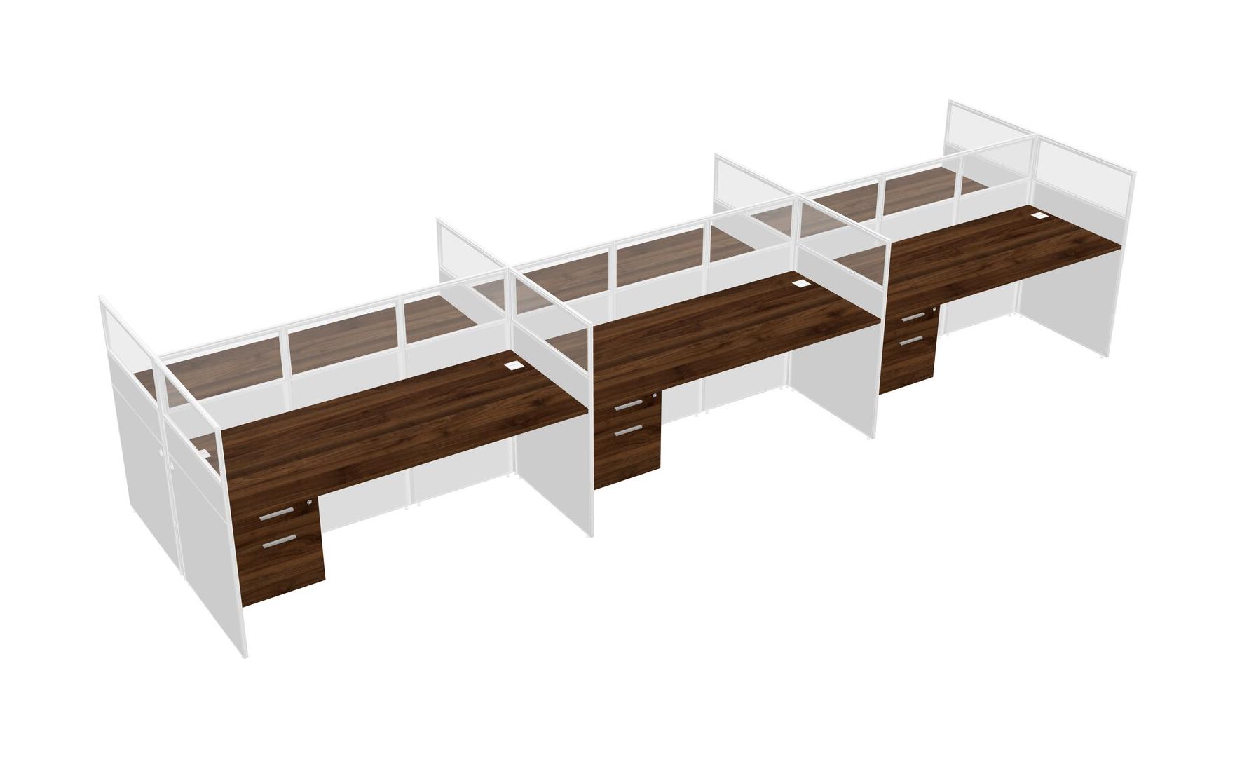 Columbia Walnut Shared Rectangular Office Cubicle Panel System With Hanging Drawers For 6 Persons