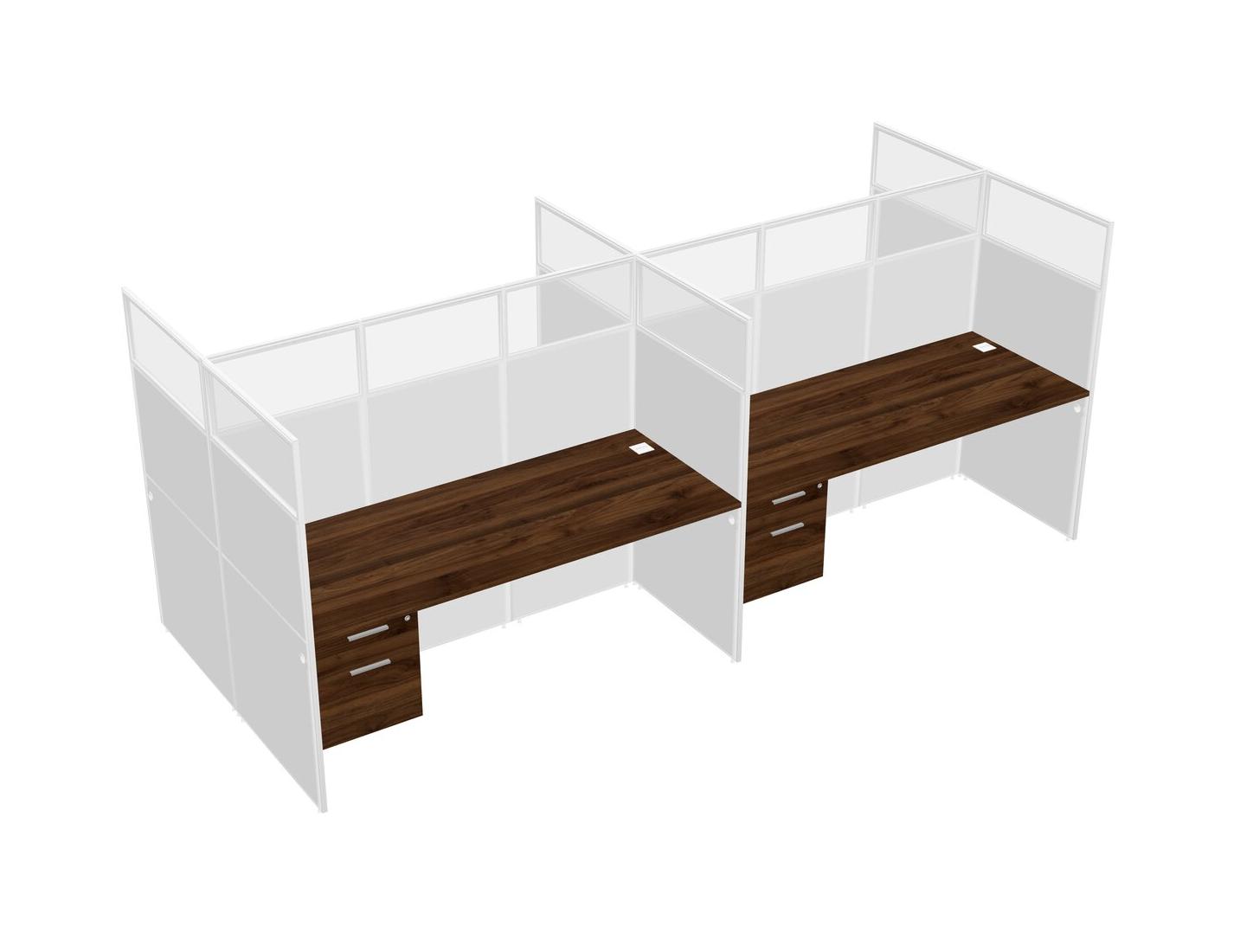 Columbia Walnut Shared Rectangular Office Cubicle Panel System With Hanging Drawers For 4 Persons