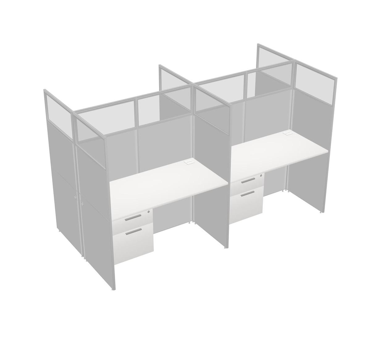 White Shared Rectangular Office Cubicle Panel System With Hanging Drawers For 4 Persons