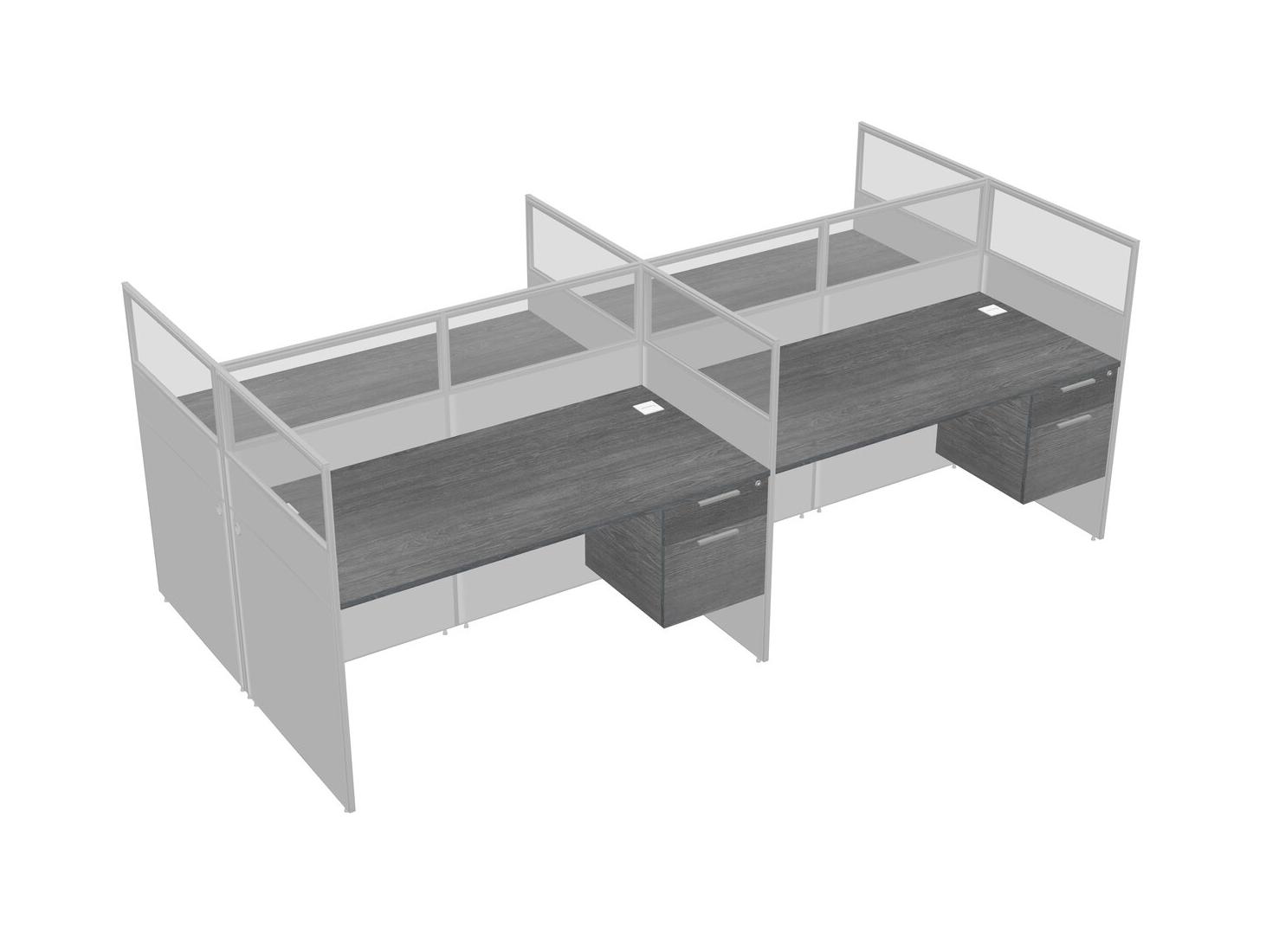 Grey Shared Rectangular Office Cubicle Panel System With Hanging Drawers For 4 Persons