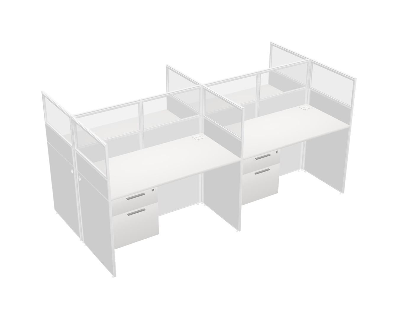 White Shared Rectangular Office Cubicle Panel System With Hanging Drawers For 4 Persons