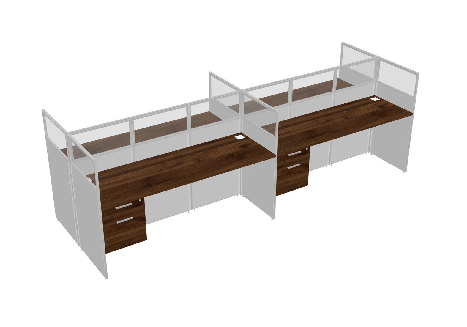 Columbia Walnut Shared Rectangular Office Cubicle Panel System With Hanging Drawers For 4 Persons