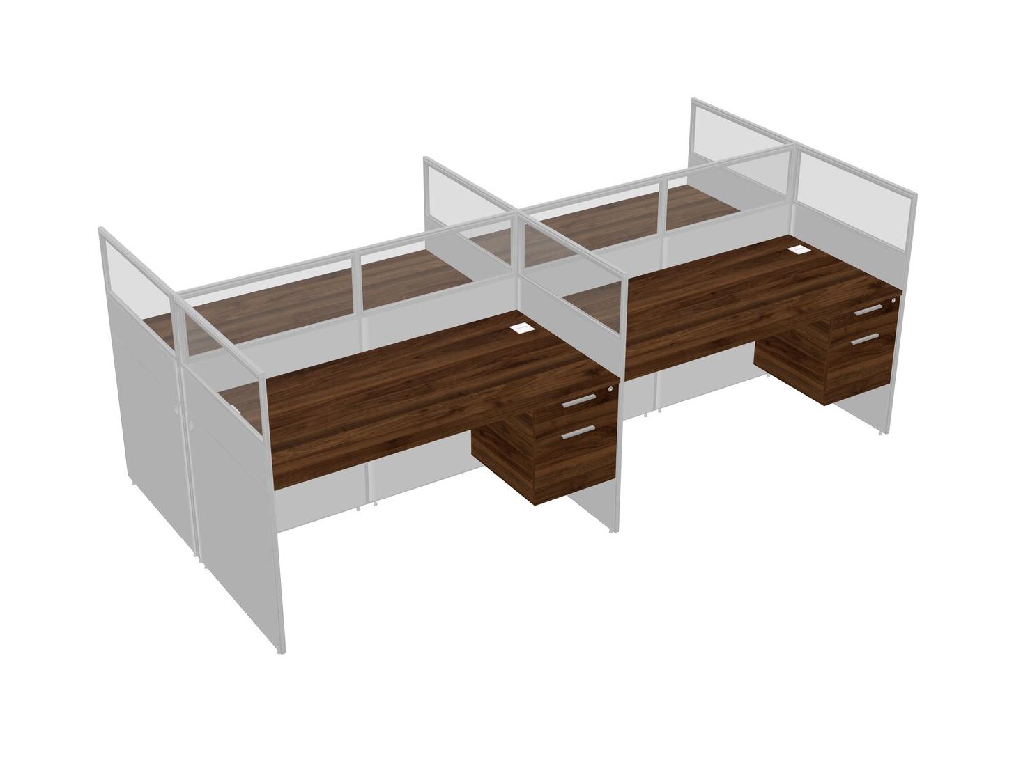 Columbia Walnut Shared Rectangular Office Cubicle Panel System With Hanging Drawers For 4 Persons