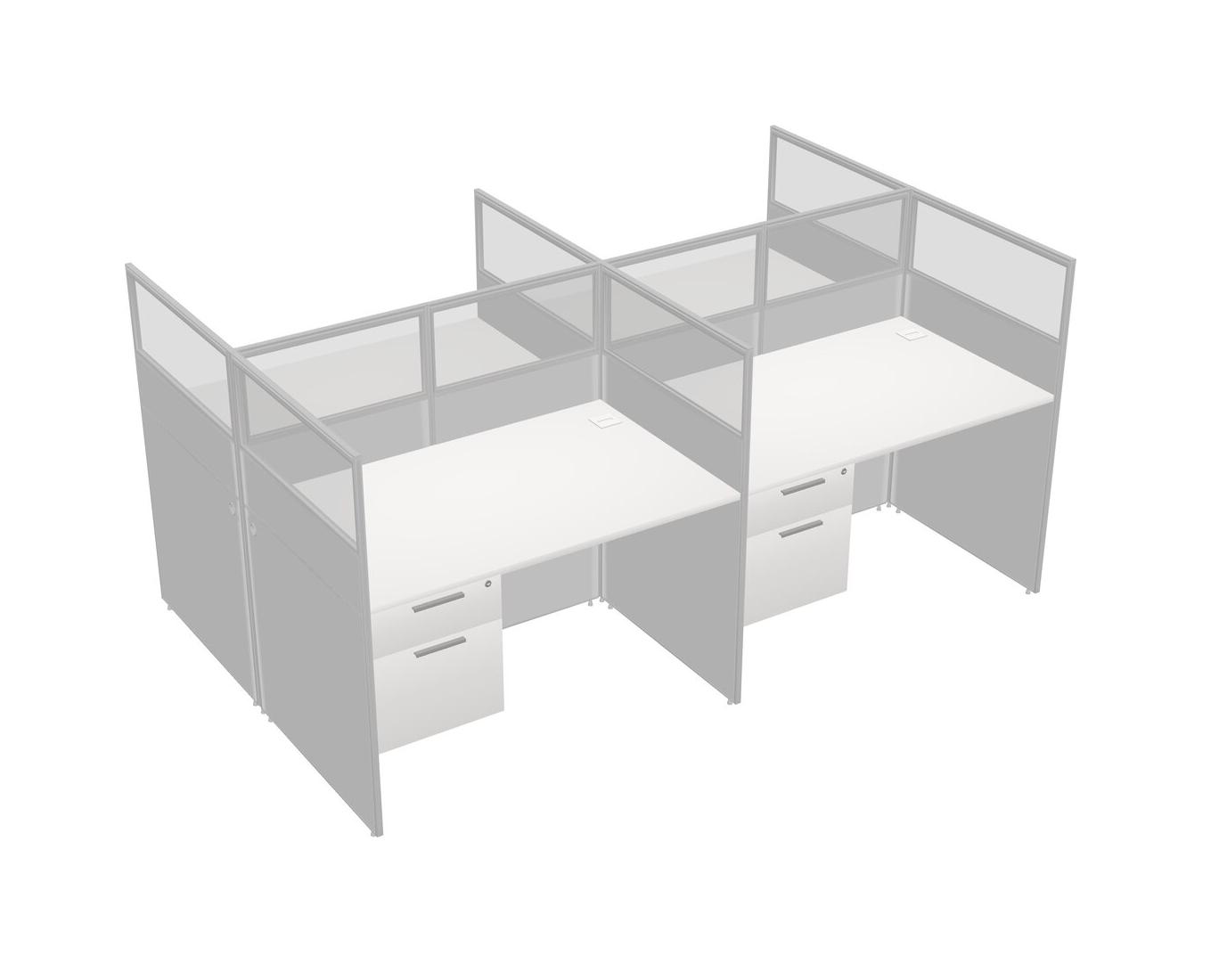 White Shared Rectangular Office Cubicle Panel System With Hanging Drawers For 4 Persons