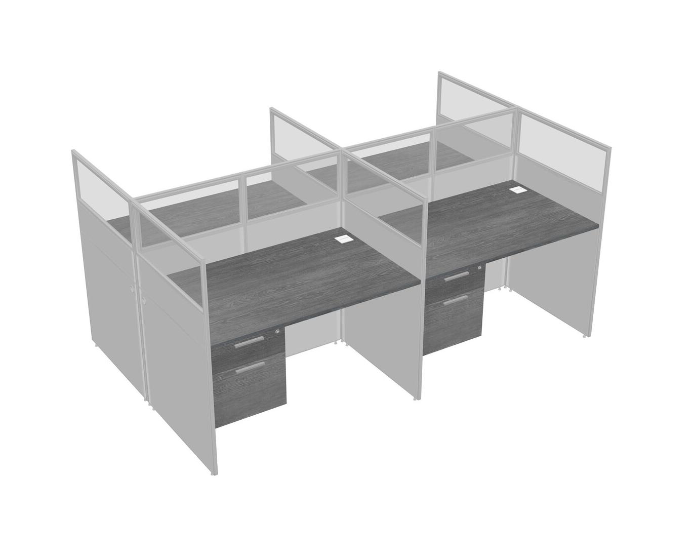 Grey Shared Rectangular Office Cubicle Panel System With Hanging Drawers For 4 Persons