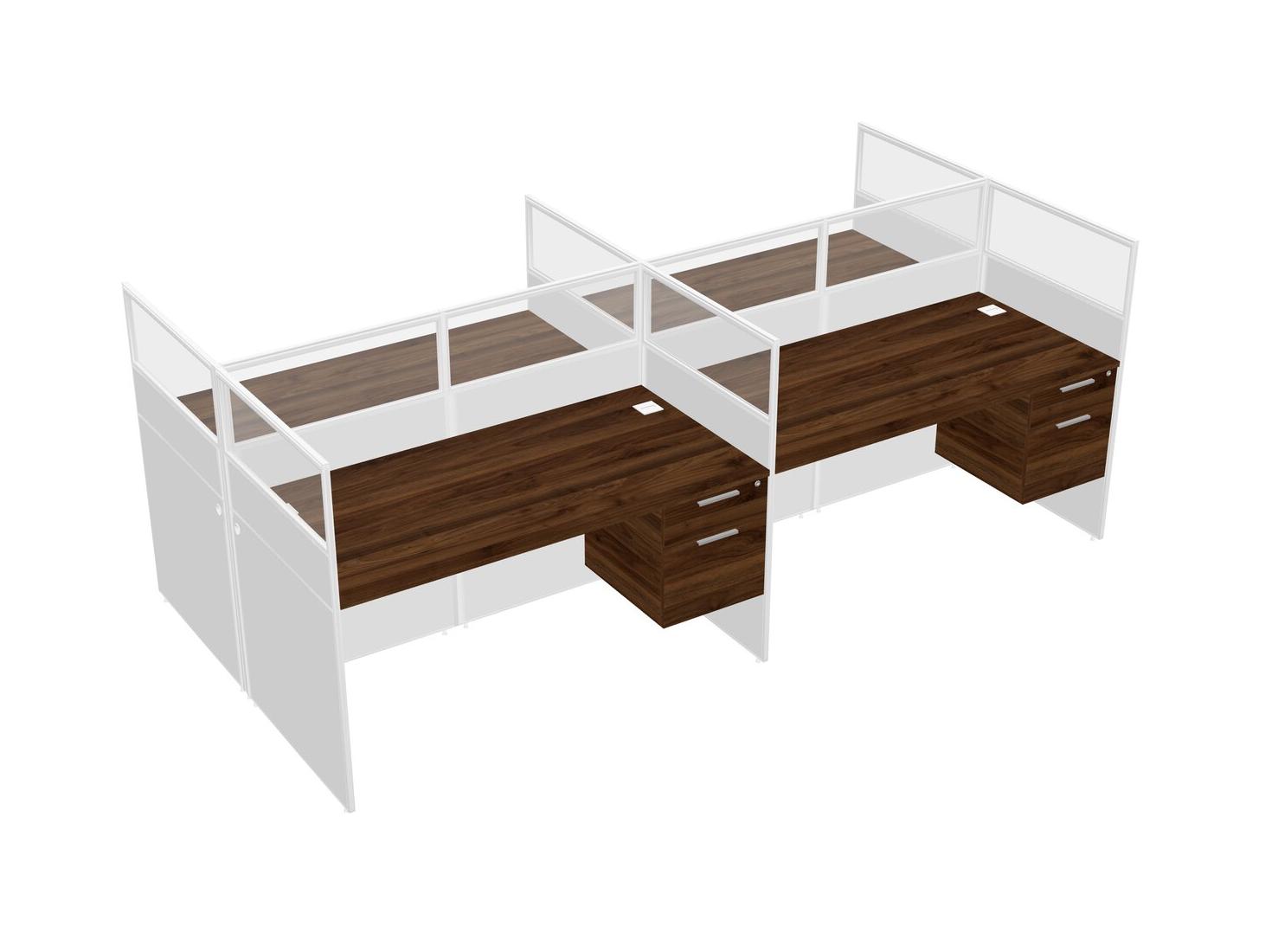 Columbia Walnut Shared Rectangular Office Cubicle Panel System With Hanging Drawers For 4 Persons