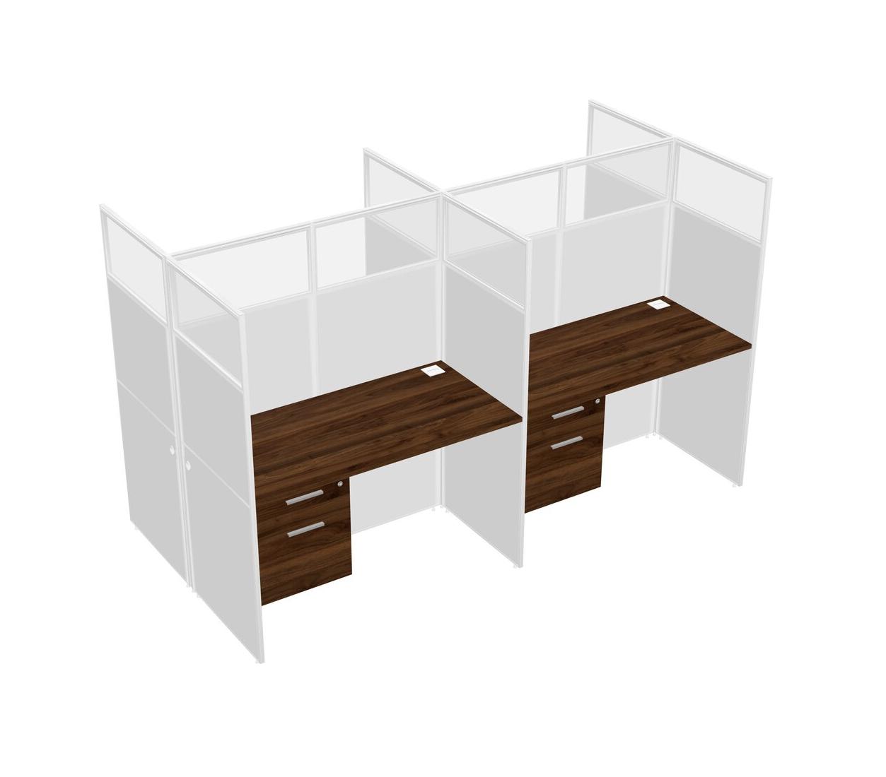 Columbia Walnut Shared Rectangular Office Cubicle Panel System With Hanging Drawers For 4 Persons