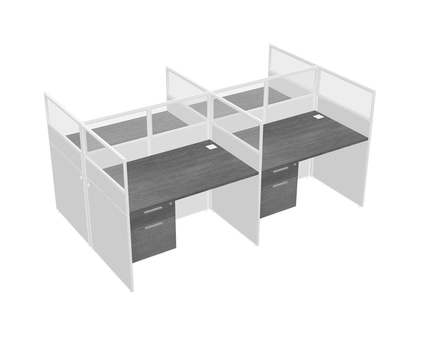 Grey Shared Rectangular Office Cubicle Panel System With Hanging Drawers For 4 Persons