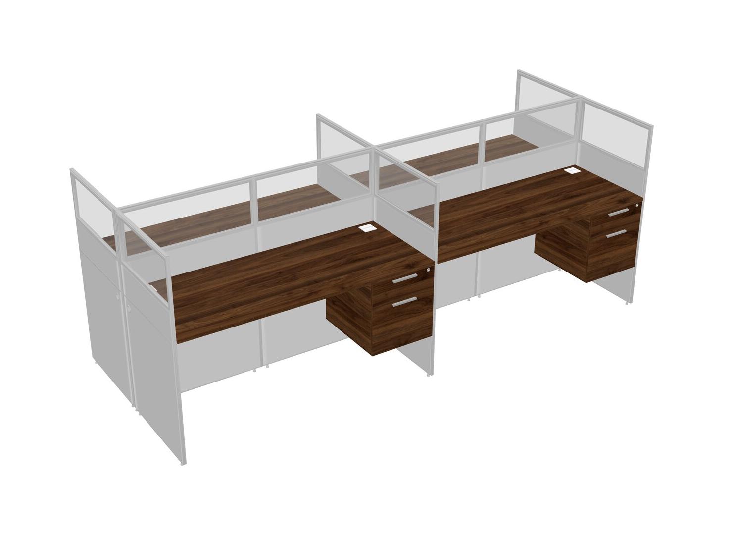 Columbia Walnut Shared Rectangular Office Cubicle Panel System With Hanging Drawers For 4 Persons