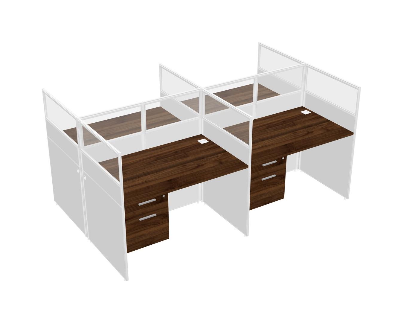 Columbia Walnut Shared Rectangular Office Cubicle Panel System With Hanging Drawers For 4 Persons