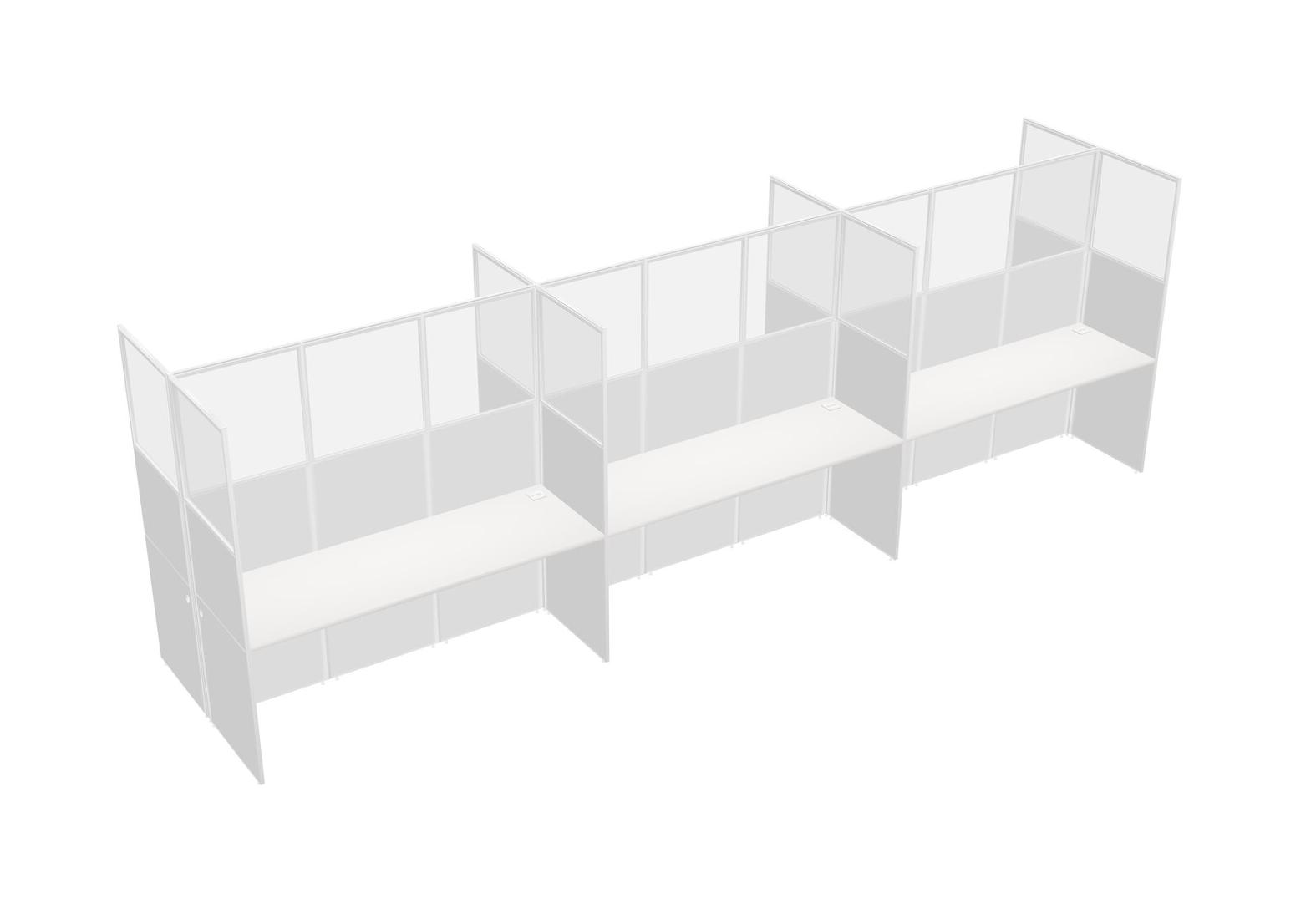 White Shared Rectangular Office Cubicle Panel System For 6 Persons