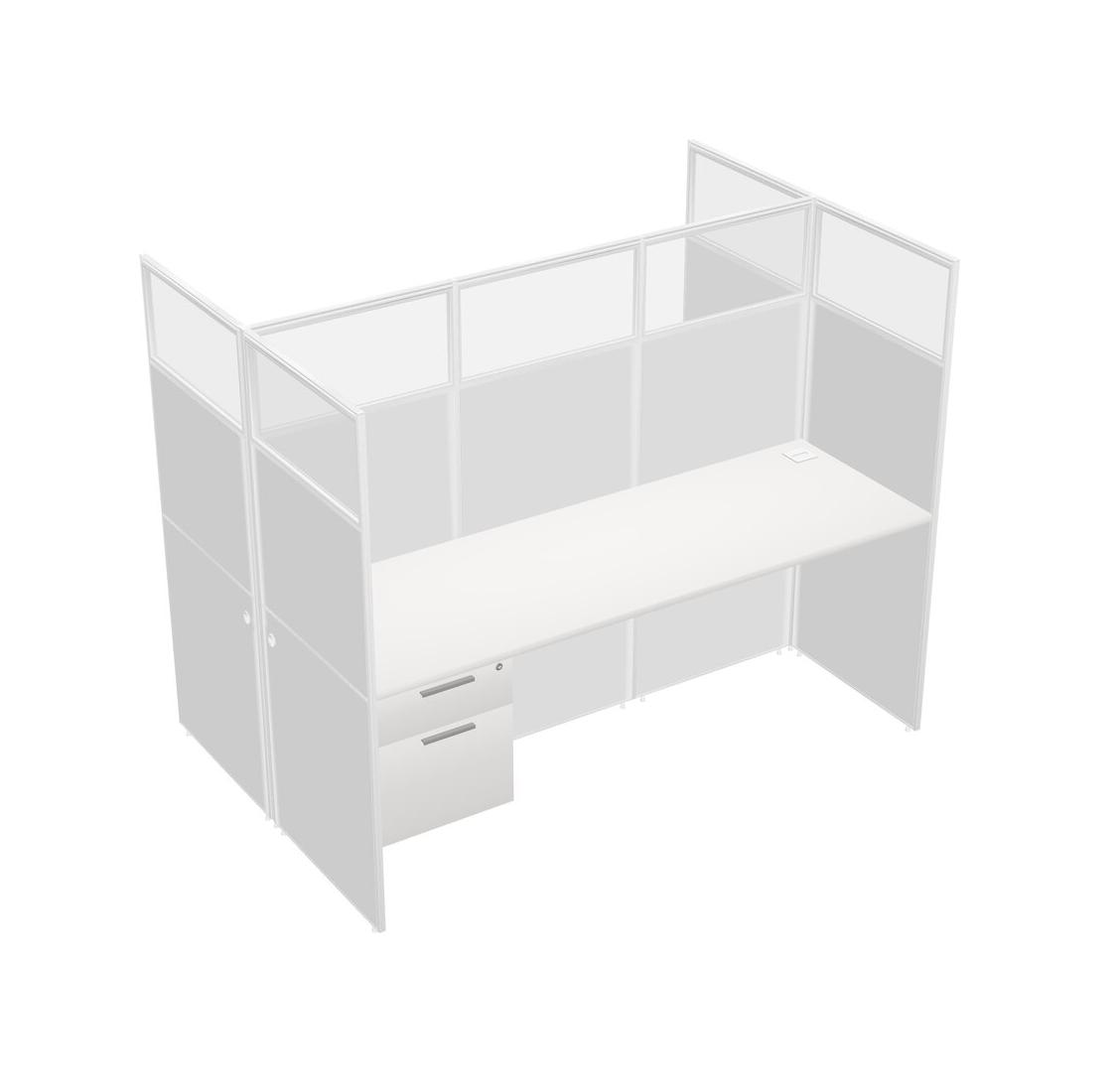White Shared Rectangular Office Cubicle Panel System With Hanging Drawers For 2 Persons