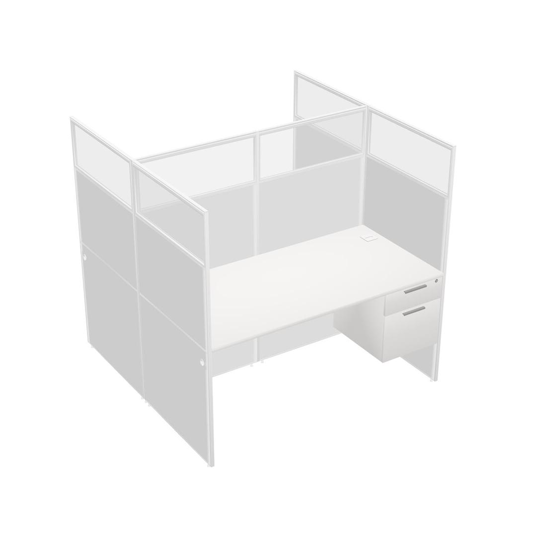 White Shared Rectangular Office Cubicle Panel System With Hanging Drawers For 2 Persons