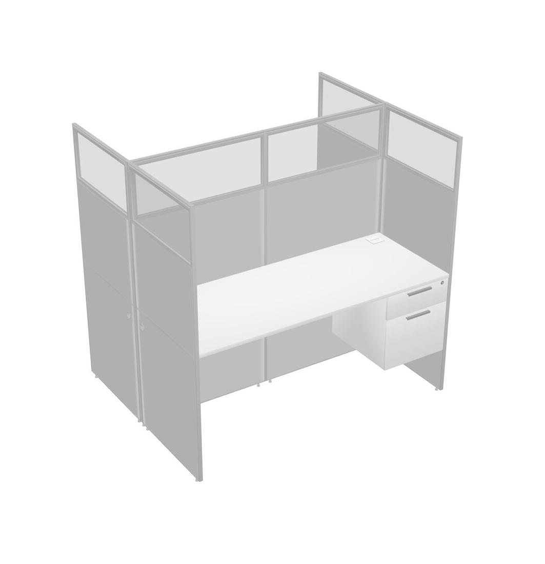 White Shared Rectangular Office Cubicle Panel System With Hanging Drawers For 2 Persons