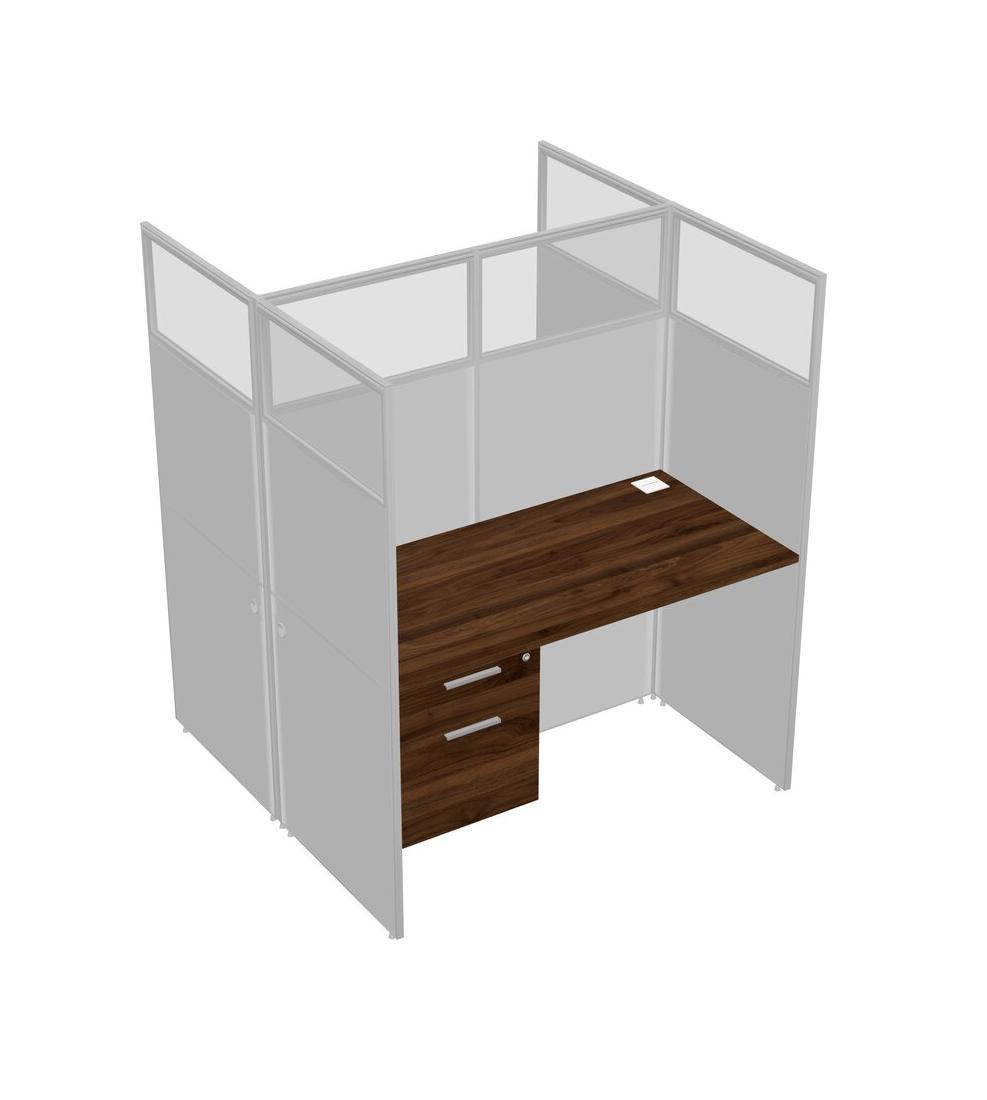 Columbia Walnut Shared Rectangular Office Cubicle Panel System With Hanging Drawers For 2 Persons
