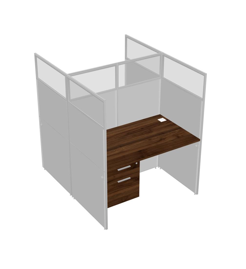 Columbia Walnut Shared Rectangular Office Cubicle Panel System With Hanging Drawers For 2 Persons