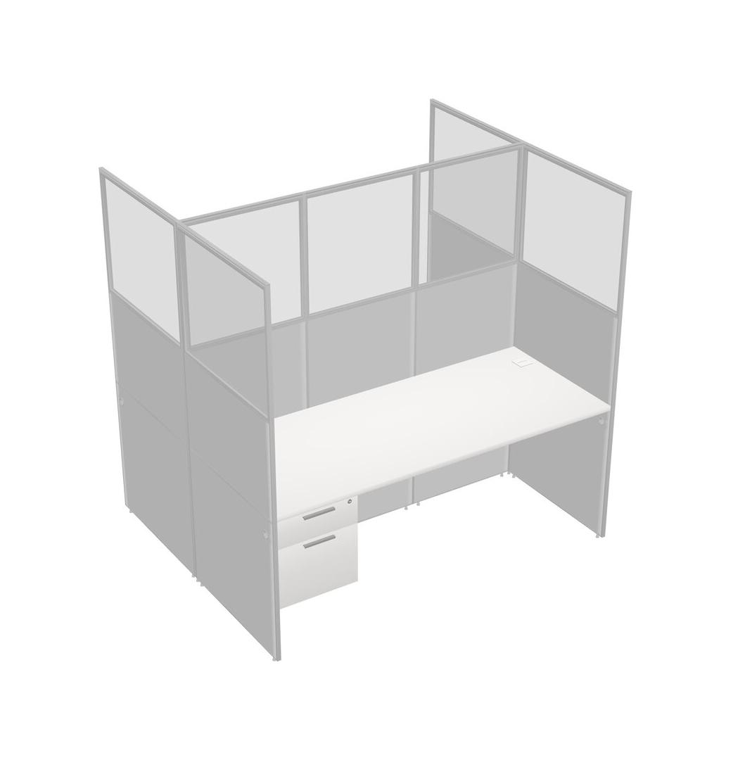 White Shared Rectangular Office Cubicle Panel System With Hanging Drawers For 2 Persons