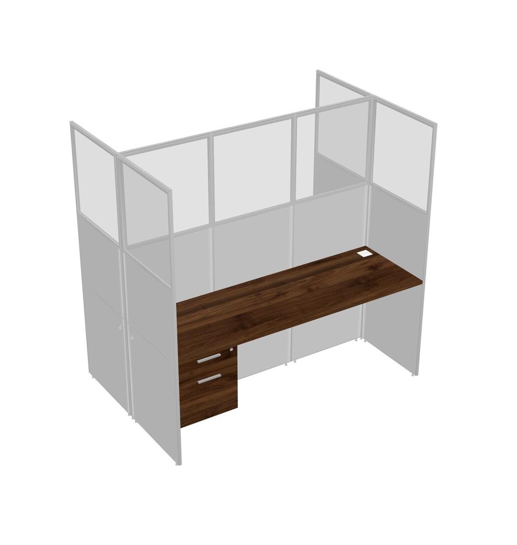 Columbia Walnut Shared Rectangular Office Cubicle Panel System With Hanging Drawers For 2 Persons
