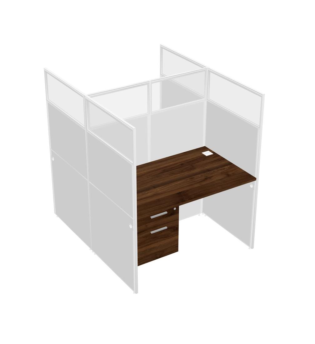 Columbia Walnut Shared Rectangular Office Cubicle Panel System With Hanging Drawers For 2 Persons