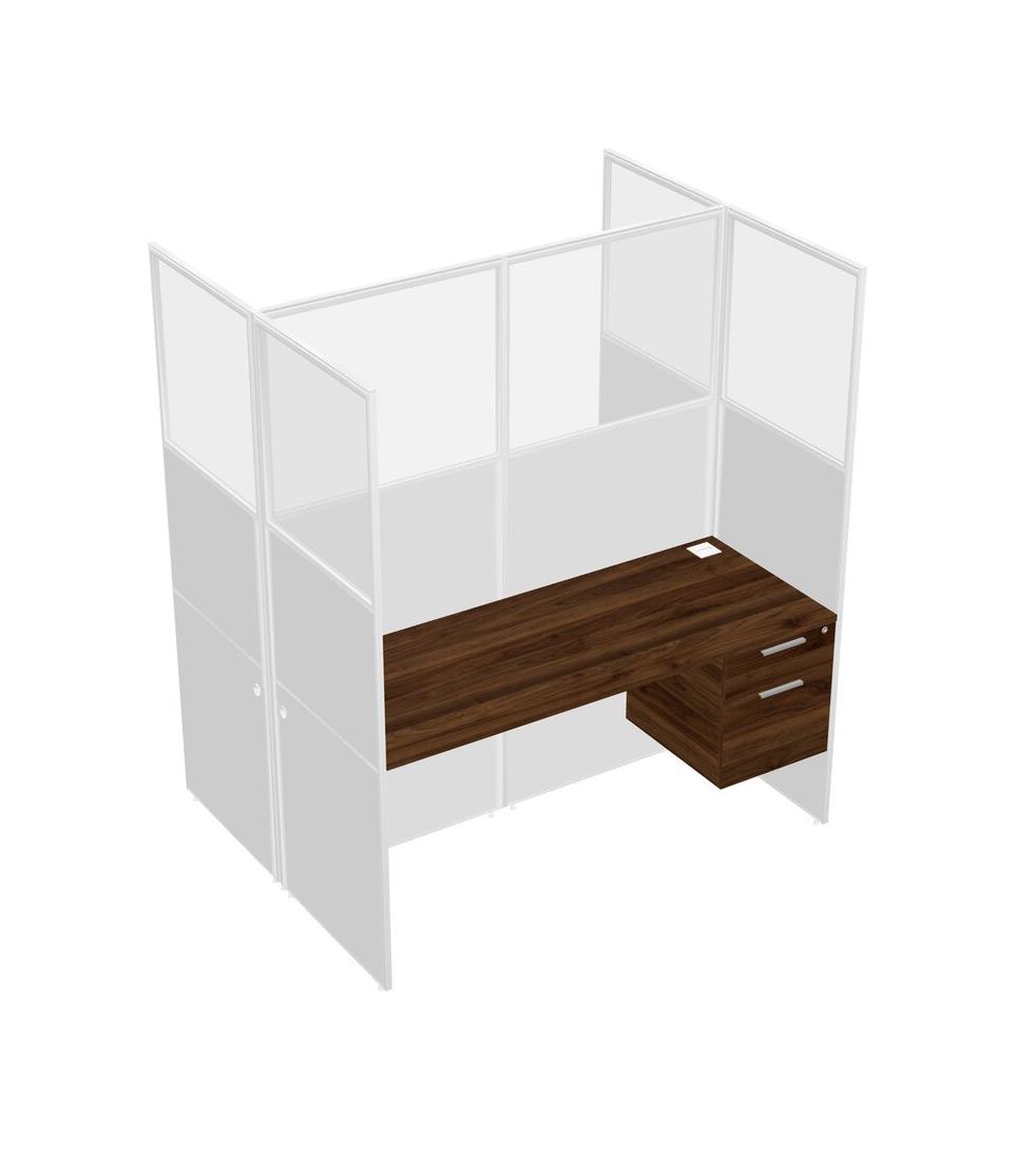 Columbia Walnut Shared Rectangular Office Cubicle Panel System With Hanging Drawers For 2 Persons