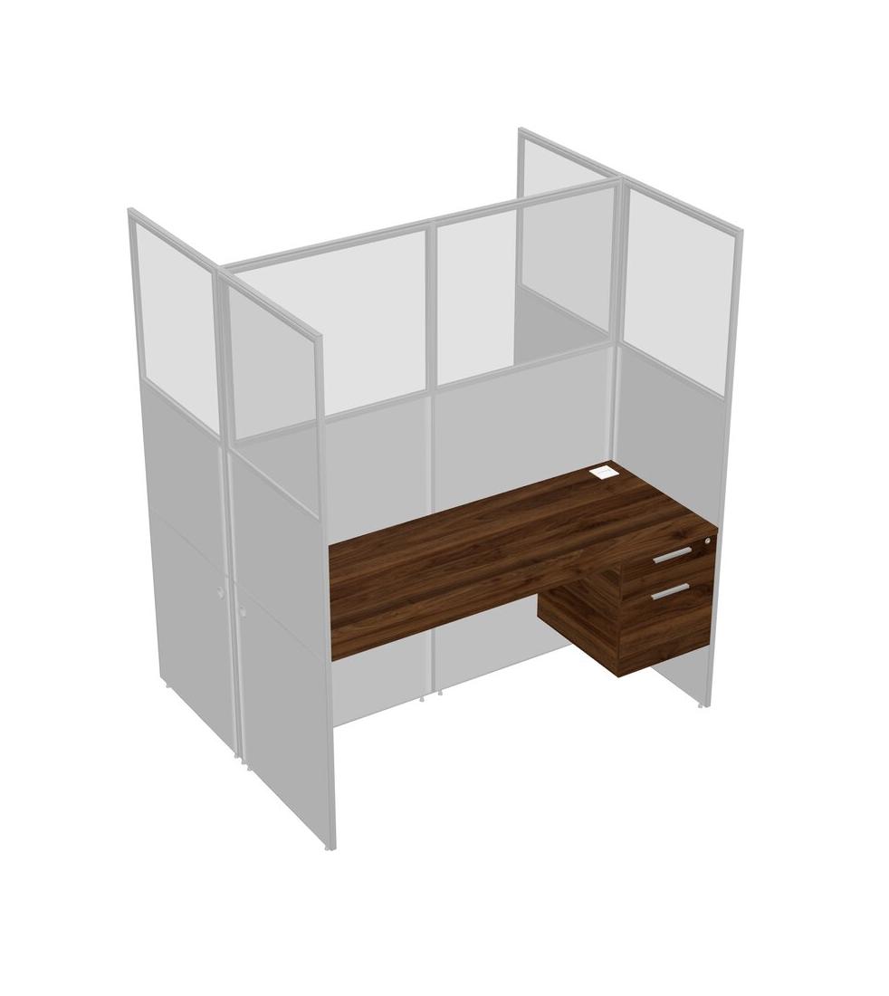 Columbia Walnut Shared Rectangular Office Cubicle Panel System With Hanging Drawers For 2 Persons