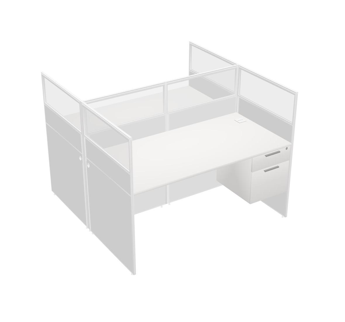 White Shared Rectangular Office Cubicle Panel System With Hanging Drawers For 2 Persons