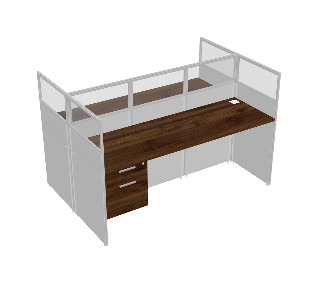 Columbia Walnut Shared Rectangular Office Cubicle Panel System With Hanging Drawers For 2 Persons