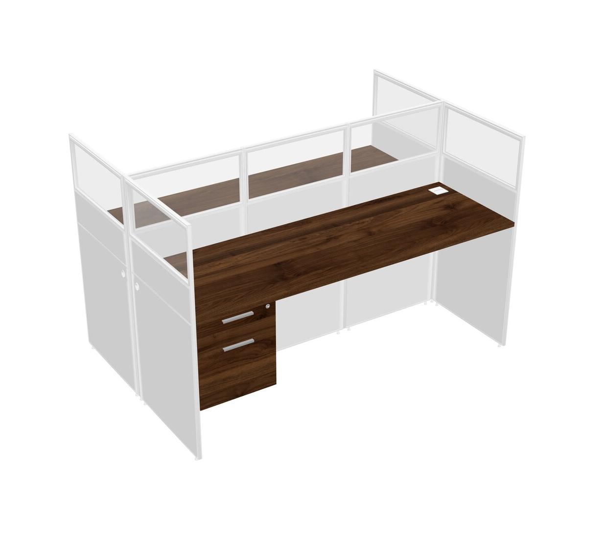Columbia Walnut Shared Rectangular Office Cubicle Panel System With Hanging Drawers For 2 Persons