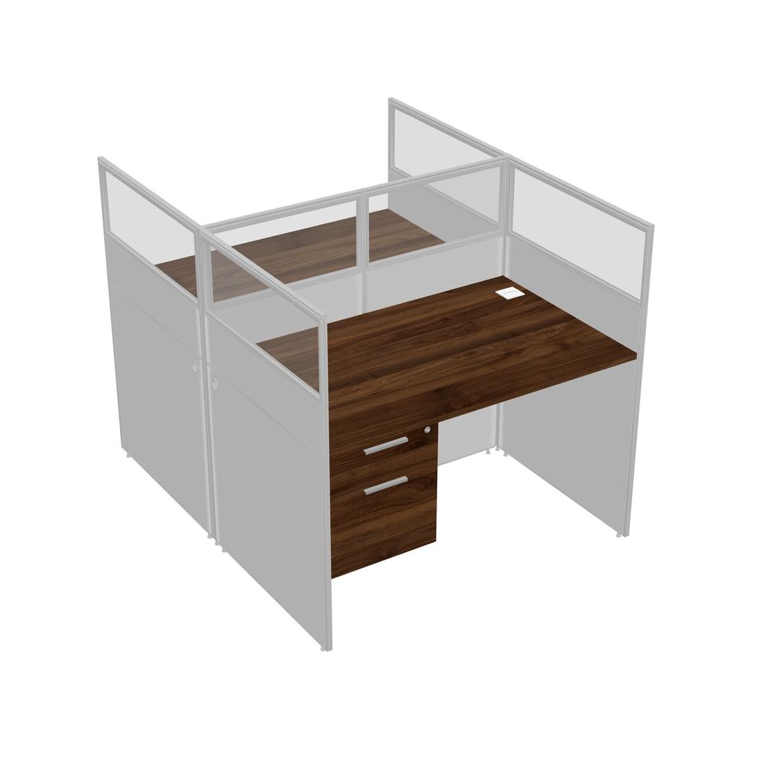 Columbia Walnut Shared Rectangular Office Cubicle Panel System With Hanging Drawers For 2 Persons