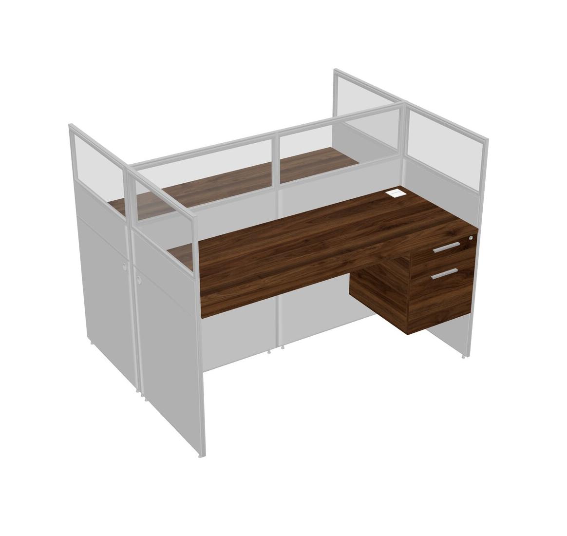 Columbia Walnut Shared Rectangular Office Cubicle Panel System With Hanging Drawers For 2 Persons