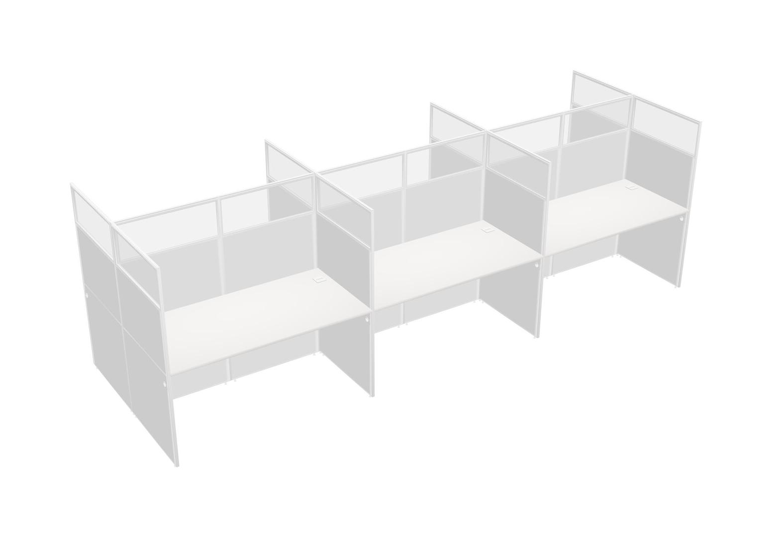 White Shared Rectangular Office Cubicle Panel System For 6 Persons