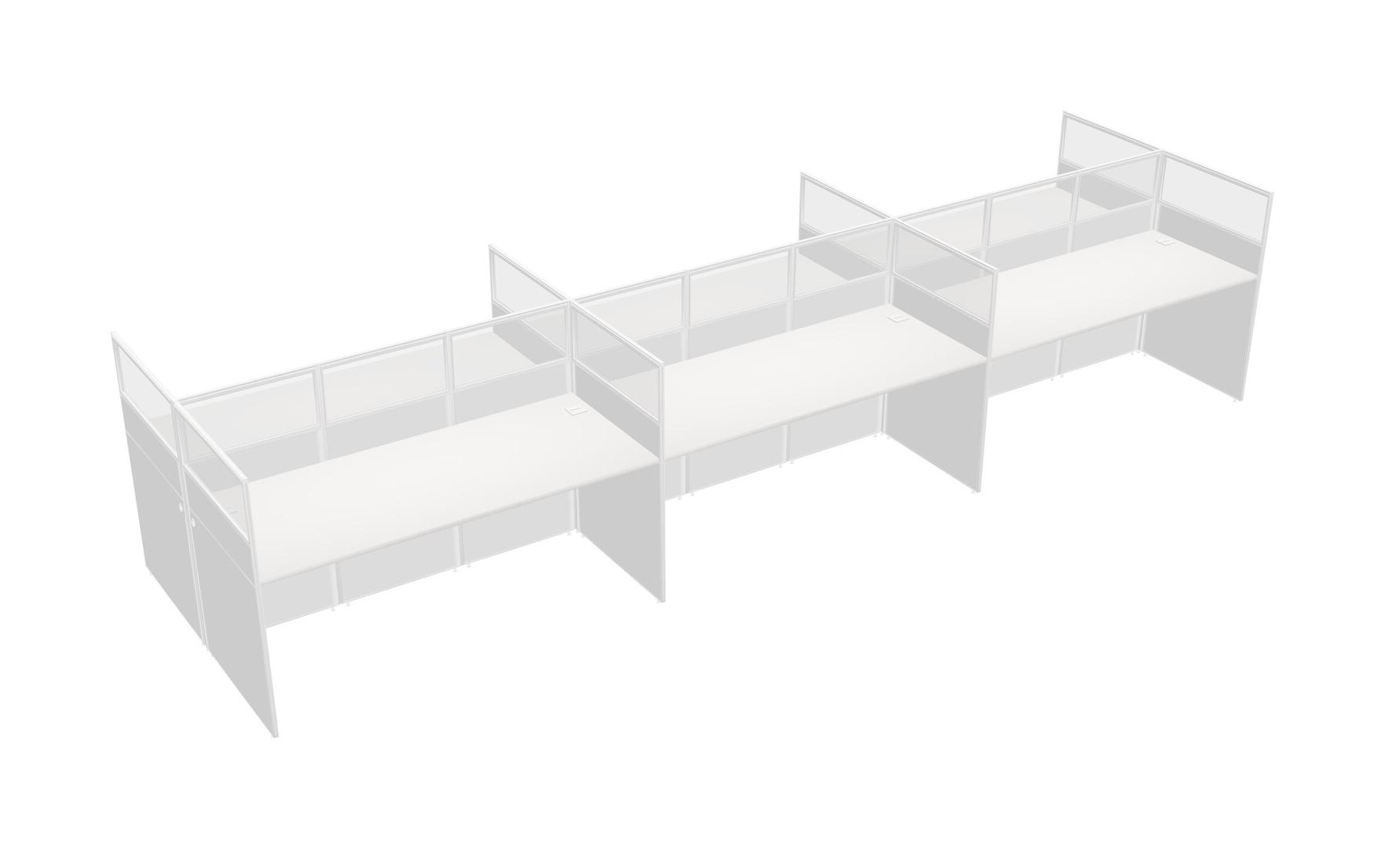 White Shared Rectangular Office Cubicle Panel System For 6 Persons