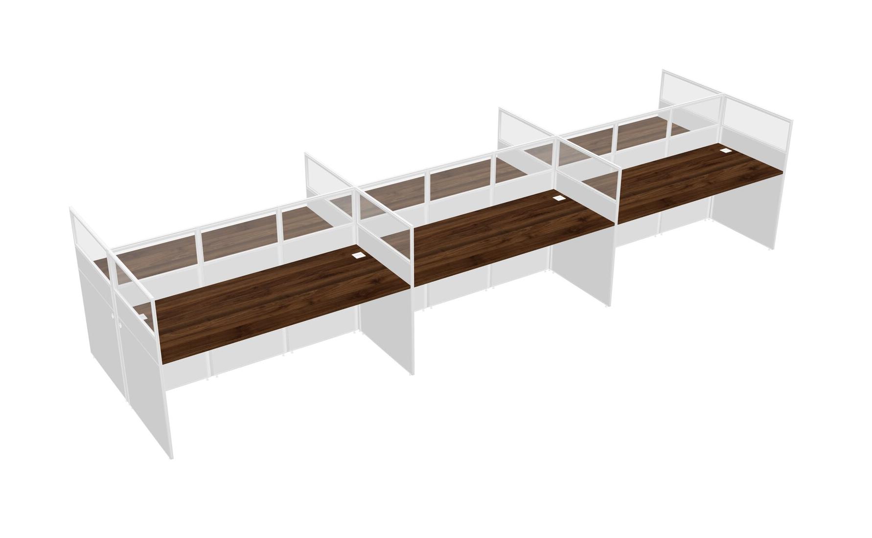 Columbia Walnut Shared Rectangular Office Cubicle Panel System For 6 Persons