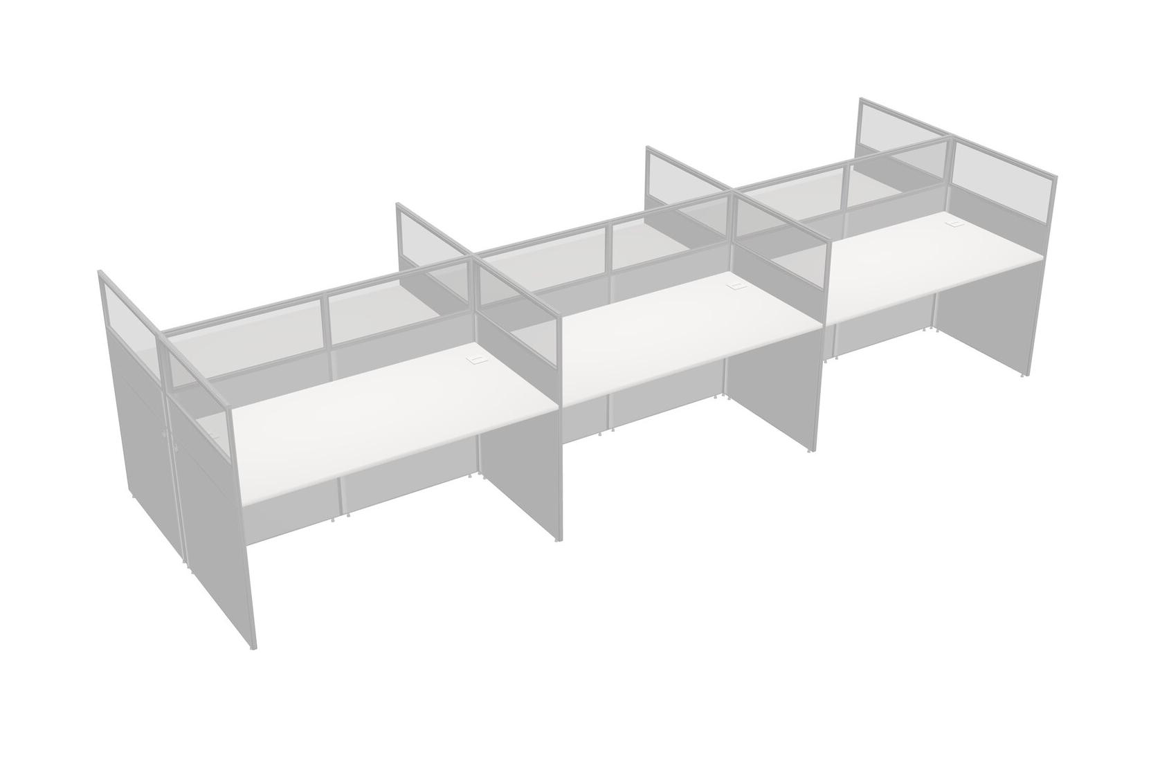 White Shared Rectangular Office Cubicle Panel System For 6 Persons