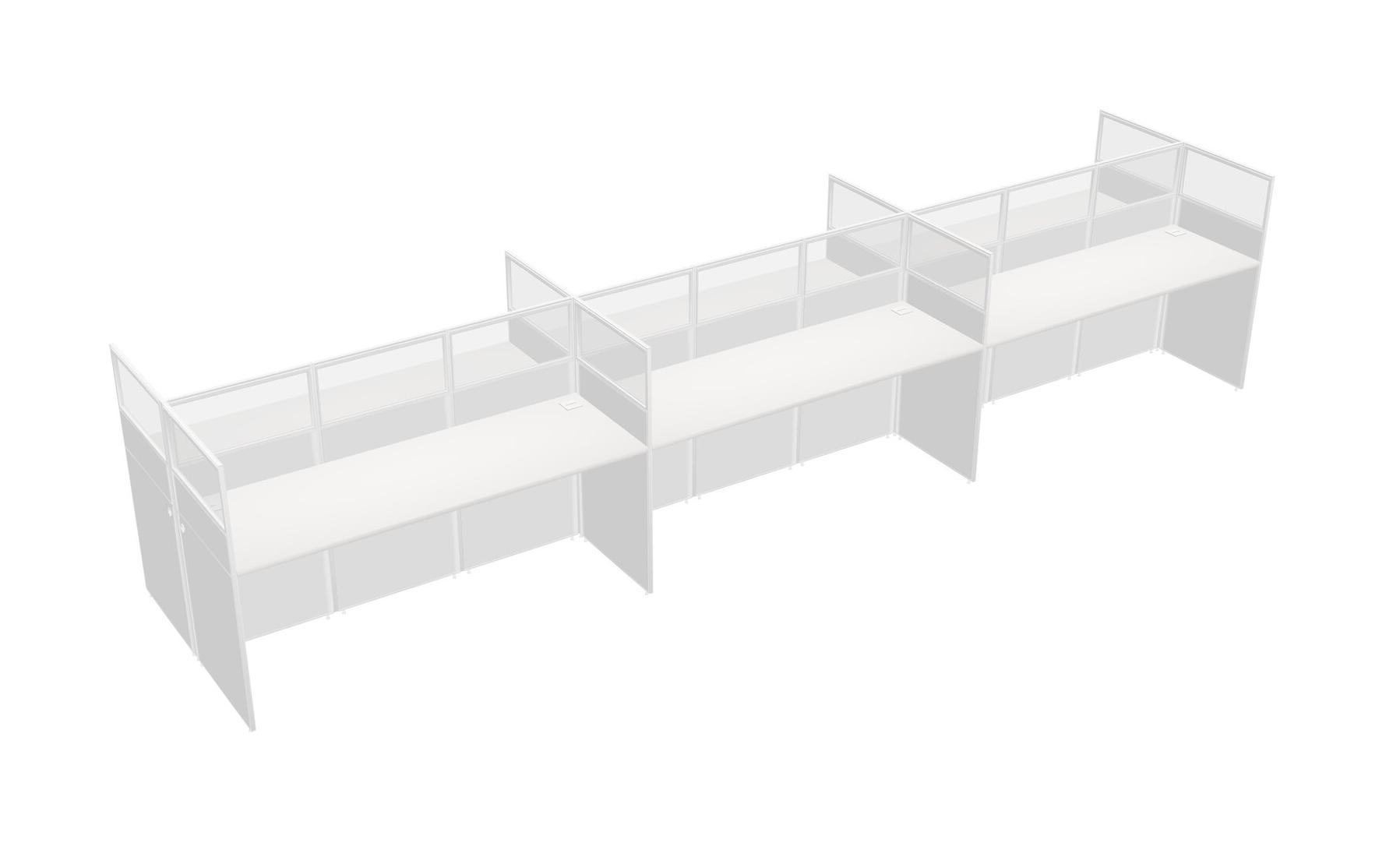 White Shared Rectangular Office Cubicle Panel System For 6 Persons