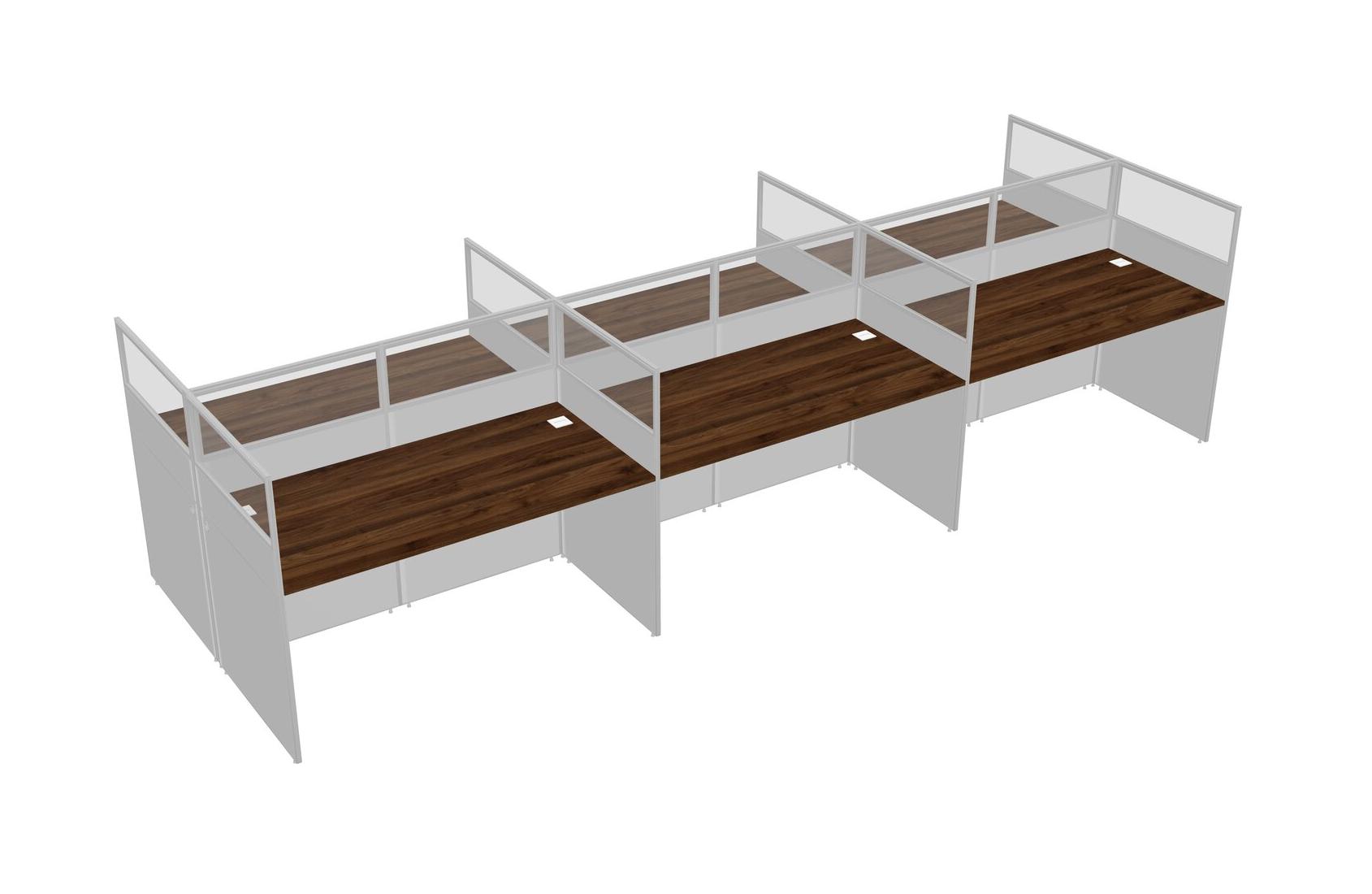 Columbia Walnut Shared Rectangular Office Cubicle Panel System For 6 Persons